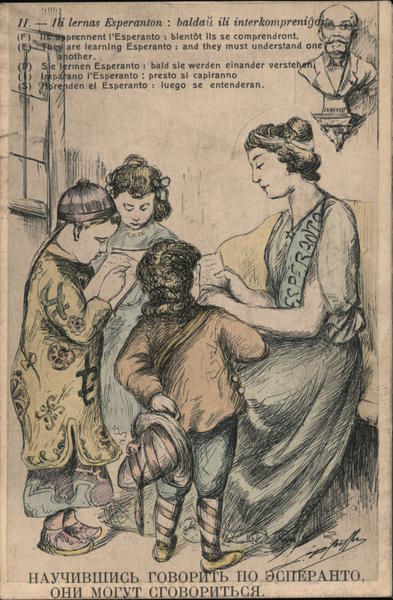 Sie lermen Esperanto : bald sie werden einander verstehen.