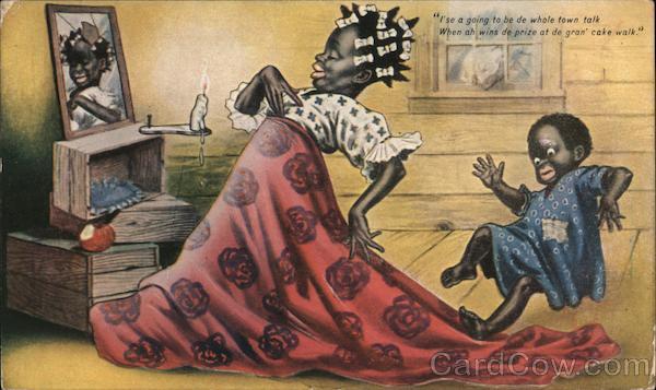 Card No.3, Series "A" - Kornelia Kinks paints a face on the back of Grandpa's hat. Jocular Jinks of Kornelia Kinks Maw, whar's your politeness? I tole you befor' To never com' in till you knock on de door. Kornelia Kinks on Stilts, H-O Company "You smash dem Kinks, I'll spoil you'face chile" Cut out from 2 packages of "Korn Kinks" the man and boy picture-then mail to us with 4c postage and receive 6 extra funny darkey cards (in 5 colors) which regularly sell for 25c. Korn-\ Kinks - Malted Flakes Delicious Malted Flakes. Ready to serve. "You smash dem Kinks, I'll spoil you face chile." Cut out from 2 packages of "Korn Kinks" the man and boy picture--then mail to us wih 4c postage and receive 6 extra funny darkey cards (in 5 colors) free from advertising which regularly sell for 25c. Jocular Jinks of Kornelia Kinks, H-O Company Card No.4, Series A - "I'se a going to be de whole town talk, When ah wins de prize at de gran' cake walk." Jocular Jinks of Kornelia Kinks - Card No.6, series A A piano full of terrified cats. Susie done thought she'd a voice like a bird. But ah soon made her see that her though was absurd. From the Darlene Thorne Collection |