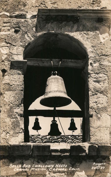 Front: BELLS AND SWALLOW'S NESTS CARMEL MISSION CARMEL CALIF. PIGGO77 20©37 Back: PIGGOTT CO.---POST CARDS- SAN FRANCISCO CORRENCE LS