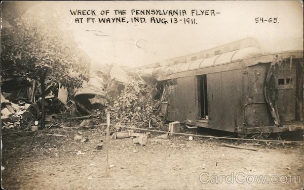 Front: WRECK OF THE PENNSYLVANIA FLYER- AT FT. WAYNE, IND. AUG. 13-1911. 54-65. Back: A A ZA * N0 N0 A 20A