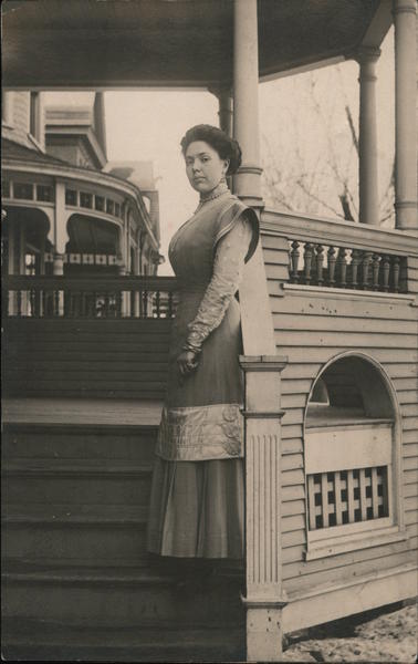 Lena Dixon, standing on porch steps