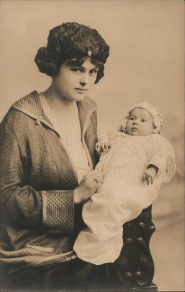 Woman holding a baby: Betty Charlene Nimitz - age 7 weeks - Jan 18, 1925