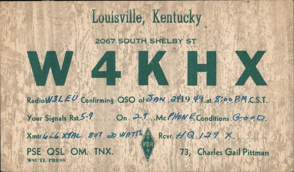 RadioW3LEU Confirming QSO of JAN 2419 49. at 8:00 P.M.C.S.T.