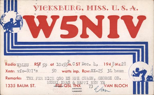 Radio W3LEU ..RST.59.at 10:55m. C.ST Dec. 4.194 8 Mc.28.
