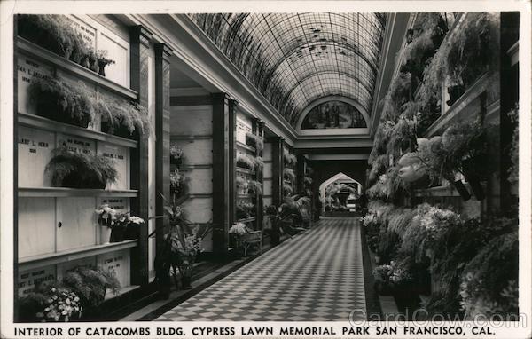 INTERIOR OF CATACOMBS BLDG. CYPRESS LAWN MEMORIAL PARK SAN FRANCISCO, CAL.