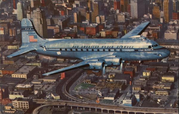 Familiar Douglas DC-4 Clippers* provide swift, de-