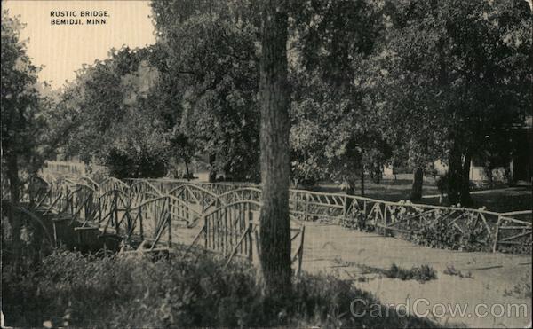 Front: RUSTIC BRI DG E. BEMIDJI. MINN THL Back: Place the Stamp here BROS ONE CENT For United States and island Possessions Cuba Canada and Mexico POST CARD SCENIC TWO CENTS MERIER for foreign 08698 7777 Published for Wilsons Fair Store CO WOO