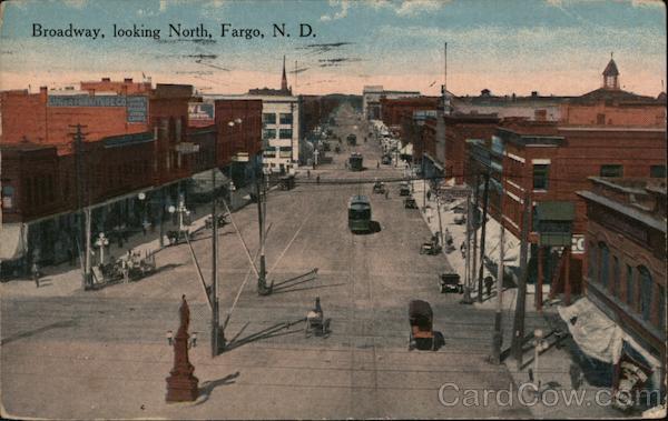 Front: Broadway, looking North, Fargo, N. D. LUGERTUANATORE CO NL asCRT Back: U.S.POSTAGE ard R JUN30 30 UM 1CENT 11915 ADORESS N.DAK CAica TguaToch No. 2541 Yanaheaury h Va Anccaps,ArGHma Candili onn an