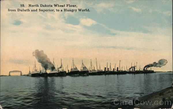 Front: 10. North Dakota Wheat Flour, from Duluth and Superior, to a Hungry World. Back: THIS SPACE FOR WRITING MESSAGES. POST CARD PLACE STAMP HERE DOMESTIC ONE CENT FOREIGN TWO CENTS THIS SPACE FOR ADDRESS ONLY A-6383