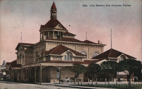 Front: 5262. City Market, San Antonio, Texas. PA Back: U.S.POSTAGE S PACE MESSAGE THIS FOR POSE CARD T T NTOA FEB 21 PM ADORESS ENT 1917 kand eanaabte R.KidBo EXAS CILIT-H balxtine had nartethA fit on swoulf havt sen a erzty'e stell Gngs