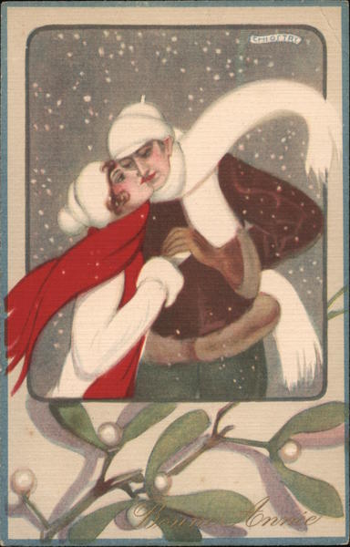 Set of 4: Italian Art Deco Couples Skiing