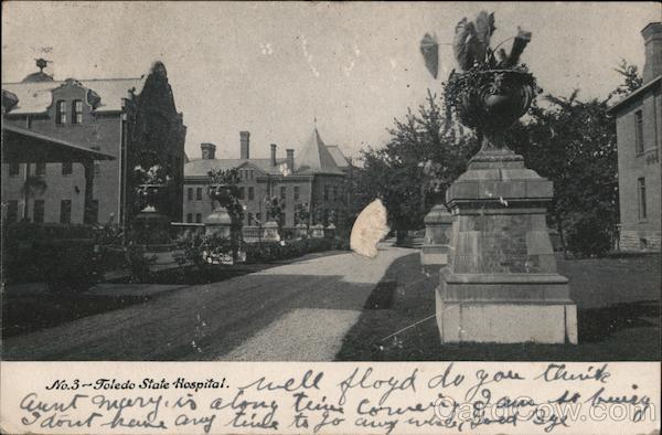 Front: No.3~ Toledo State Hospital. Mell Mosd do you turik Cent mery: con le mani de red tage 22 Back: POSTCARD TE DOW 1706 COND Inaslu. Tloyd Imageski, Cherry. St City near Felix, st.