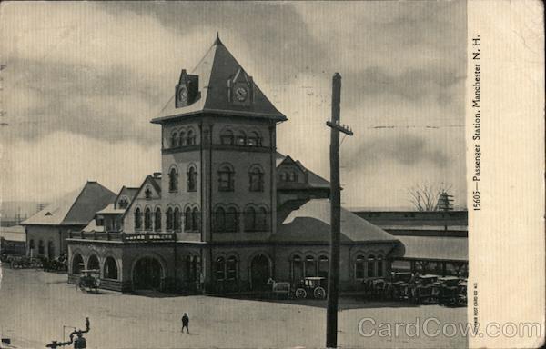 Front: 15605— Passenger Station. Manchester N. H. Back: UNVIVEIST re Post Ranch ANN 190 OCT : 430 FM 1706 FRANKLE DR. C. J. WILSON, 813 BEECH ST., MANCHESTER, N. H. moe. Dobodington 2033 Vasradena ave, Los angelod, bal.