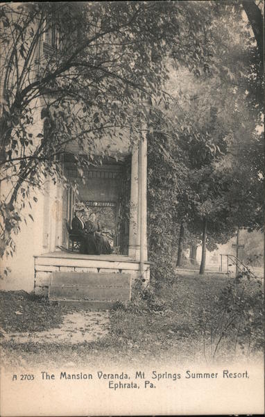 Front: A 2703 The Mansion Veranda, Mt Springs Summer Resort, Ephrata, Pa. Back: The Rotograph Co., N. Y., City. (Germany.)