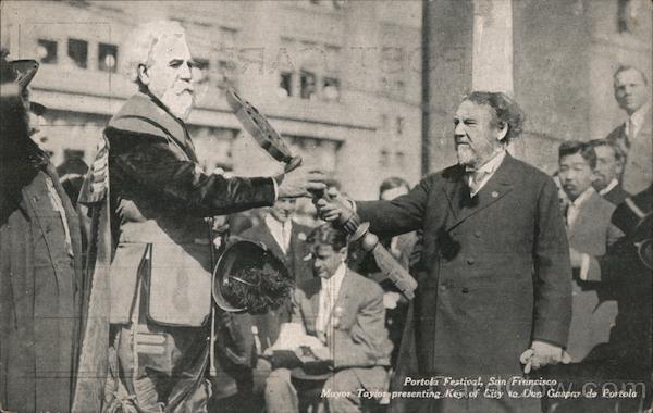 Front: TBI (P: Portola Festival, San Francisco Mayor Taylopresenting Key of City to Don Gaspar de Portola Back: nr Place Stamp Here POST CARD DOMESTIC 1c FOREIGN 2c Message Address PUBLISHED BY PACIFIC NOVELTY CO , SAN FRANCISCO 6 d