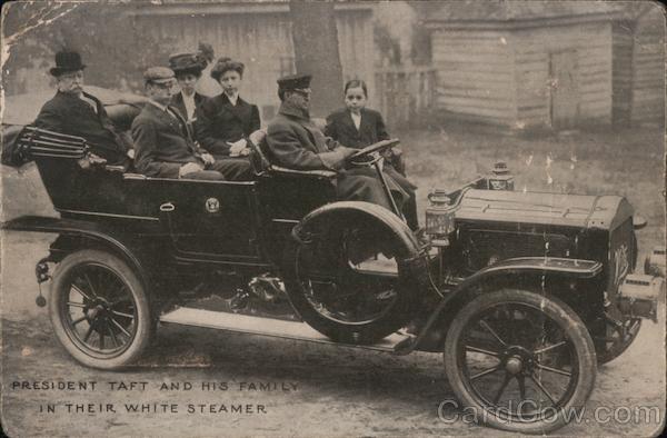 Front: PRESIDE NT TAFT AND HIS FAMILY IN THEIR WHITE STEAMER 10 Back: POST CARD PLACE STAMP HERE DOMESTIC, ONE CENT This Side For Address Only This Space for Writing Messages FOREIGN, Two CENTS