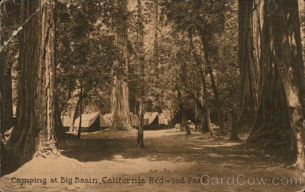 Front: Camping at Big Basin, California Redwood Park. 2290 Back: This Space for Correspondence Post Card 25 Address TAMA SOUVENIR PUBLISHING CO.SAN FRANCISCO