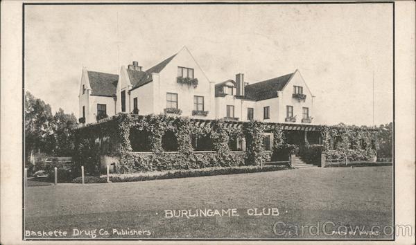 Front: Bugan. BURLINGAME CLUB Baskette Drug Co. Publishers PHOTO BY NAISAT Back: PLACE ost ard POSTAGE STAMP MERE DOMESTIC ONE CENT FOREIGN TWO CENTS