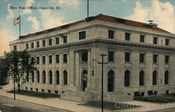 Front: New Post Office, Danville, Ill Back: THIS SPACE FOR WRITING MESSAGES oST ÁRD PLACE STAMP HERE DOMESTIC ONE CENT FOREIGN TWO GENTS THIS SPACE FOR ADDRESS ONLY W RT-20745