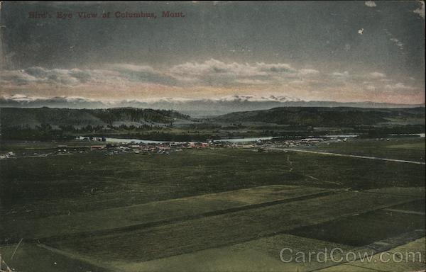 Front: Bird's Eye. View bf Columbus, Mont Back: POST CARD CERTEN 1902 UNITEDSTATES OF ANERICA COL This space for writing This side is for the Address. 206 FRANKLUN 290 POSTAGE ONE CENT auhenker boketae 162023 Pub. by R. C. Line. Made in Germany.