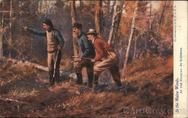 Set of 4: "In the Maine Woods" Hunting Scenes