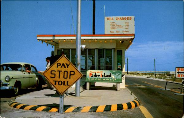 Entrance to the Padre Island Causeway near Corpus Christi, Tex. Watch the notional spotlight focus on Padre Island as the Playground of the South.