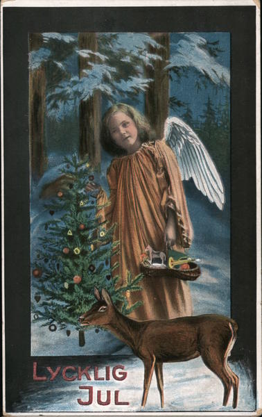 Front: LYCKLIG JUL Back: POST-CARD ealo Cal Publ. by Fredrik Peterson, Malden Branch, Baston, Mass. Made in Germany