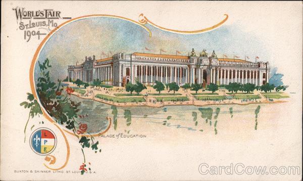 Front: WORLDSAIR SrleUis Mo 1904 L PALAGE of EDUCATION P BUXTON & SKINNER LITHO. ST. LOUIS U.S. A Back: PLACE STAMP HERE ONE CENT STAMP FOR UNITED STATES CANADA & MEXICO O ST CARD TWO CENT STAMP FOR ALL OTHER COUNTRIES This side for the address only