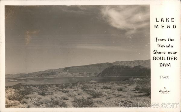 Front: LAKE MEAD from the Nevada Shore near BOULDER DAM F5431 Frashers FOTOS Back: Fls h-rsy POST CARD PLACE STA P HORE CORRESPONDENCE ADDRESS