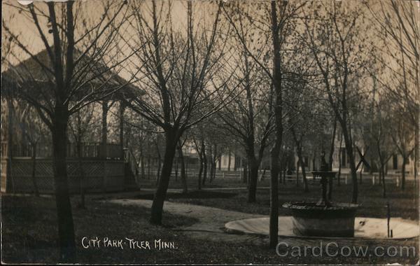 Front: amds CITY PARK TYLER MINN Back: POST CARD A 2 0 A PLACE STAMP o HERE A Az O NAME AND ADDRESS HERE CORRESPONDENCE HERE hoa th the a errts ae tro