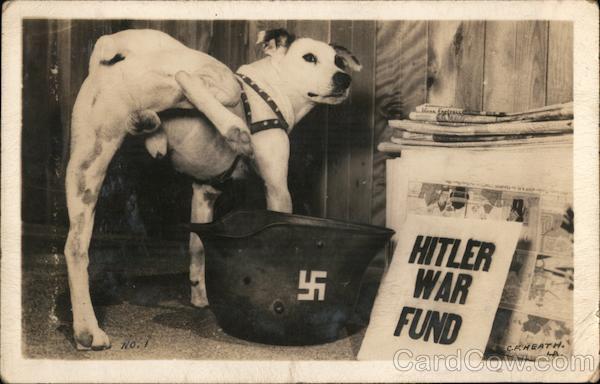 Front: ouma Eortres HITLER WAR FUND C.F.HEATH. LA. NO.1 Back: Eke POST CARD PLACE STAMP HERE CORRESPONDENCE ADDRESS