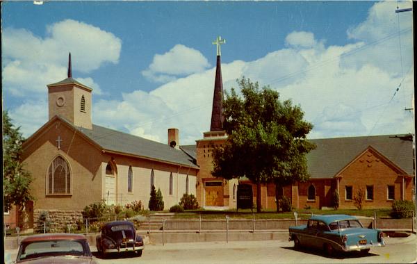 FIRST METHODIST CHURCH Newcastle, Wyoming Pub. by R. Meline Photos, Francis Drake Hotel, Minneapolis 4, Minn. 7133B Genuine Natural Color Made By DEXTER PRESS, Inc., West Nyack, N. Y. POST CARD