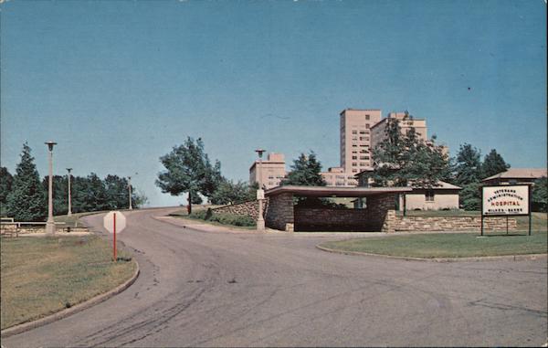 Front: WETERANE HOSPITAL WOLNES-4t Back: VETERANS ADMINIST RATION HOSPITAL Wilkes-Barre, Pa. PLACE STAMP HERE 46501 Post Card Mebane Greet ing Card Company, Wilkes-Barre, Pa.