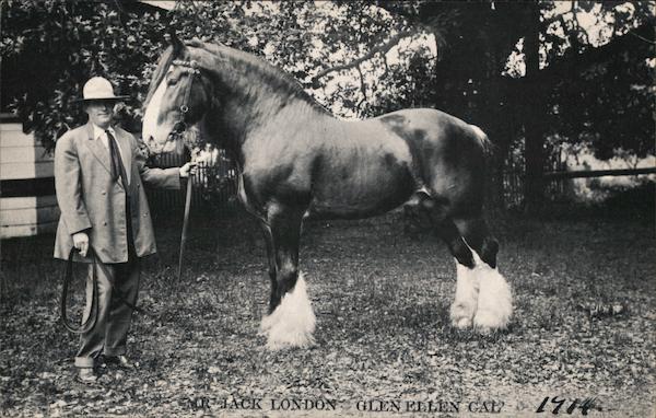 Front: PT eACK LONDON GLEN ELLEN CAL - 1774 Back: JACK LONDON (1876-1916) Jack is showing off his prize stallion "Neua dd Hillsi de '". PLACE STAMP HERE POST CARD Address AEBOWTEY DISTRIBUTED BY THE WORLD OF JACK LONDON, GLEN ELLEN, CA