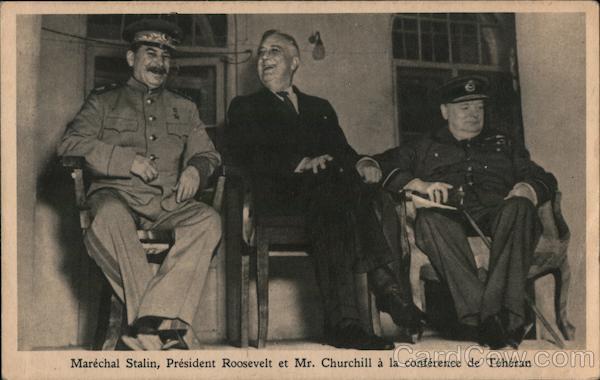 Maréchal Stalin, Président Roosevelt et Mr. Churchill à la conférence de Téhéran