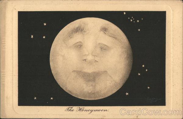 Front: The Honeymoon Back: PoST CARD INLAND POSTAGE 1/2 d ADDRESS ONLY FOREIGN POSTAGE 1 d Copyright. James Henders on & Sons. Ltd, London. Printed in Saxony. The Gibson'Post Cards No. 121