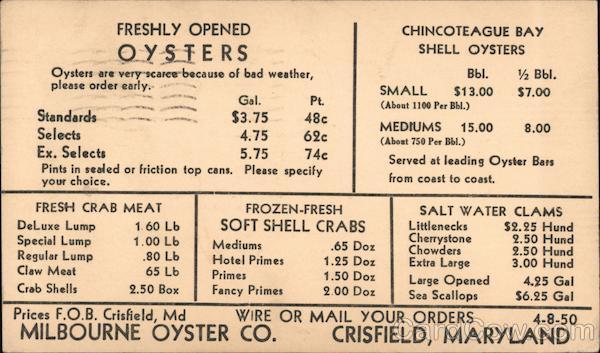 Prices F.O.B. Crisfield, Md