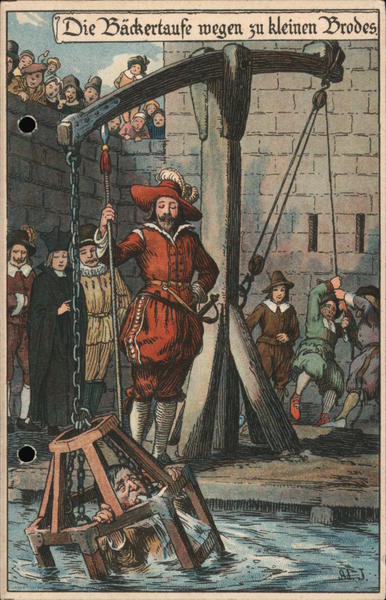 Front: (Die Bäckertaufe wegen zu kleinen Brodes Back: 2J0 Postfarte. An in. wohnung. Lith & Druck von E. Nister, Nürnberg.