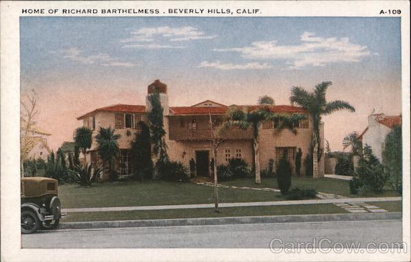 Front: HOME OF RICHARD BARTHELMESS . BEVERLY HILLS, CALIF A-108 Back: POST CARD ADDRESS STAMP PACIFIC NOVELTY CO.SAN FRANCISCO &LOS ANGELES