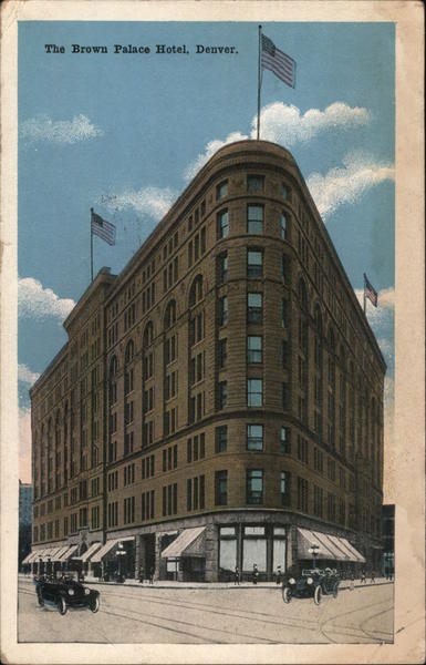 Front: The Brown Palace Hotel, Denver. Back: 0st Gare NO 22 io. ADDRESS U.S.POST E 1271lrn ahec lene alhai lu ternhe 7 l hap bueinie etanlelill. ait KROPP CO.. MILWAUKEE