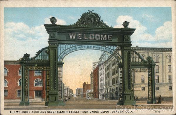 THE WELCOME ARCH AND SEVENTEENTH STREET FROM UNION DEPOT, DENVER, COLO