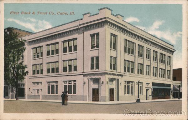 Front: First Bank & Trust Co., Cairo, Ill. Back: Post Grd PLACE STAMP HERE al DOMESTIC ONE CENT FOREIGN TWO CENTS 35311 CTOCHROM E