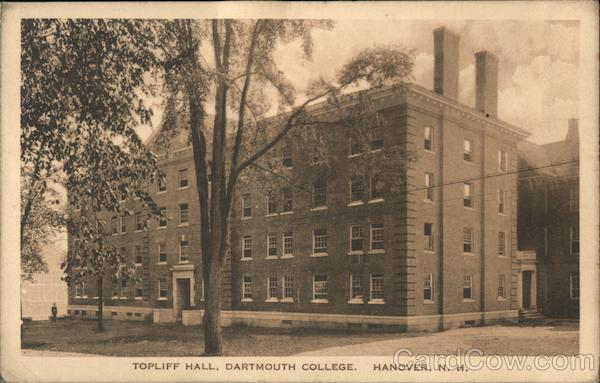 Front: LLE TOPLIFF HALL, DARTMOUTH COLLEGE HANOVER, N. H. Back: POST CARD THIS SPACE FOR MESSAGE. THIS SPACE FOR ADDRESS. Published by The College Bookstore, Hanover, N. H. Post Cards of Quality.The Albertype Co., Brooklyn, N. Y.