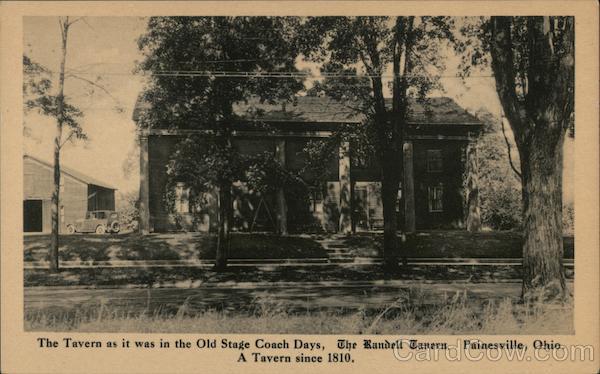 Front: The Tavern as it was in the Old Stage Coach Days, A Tavern since 1810. The Randell Tauern, Painesville, Ohio. Back: POST CARD Pub. by CONNEAUT GRAVURE CO., Conneaut, Ohio