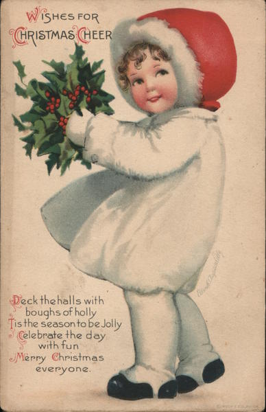 Front: WISHES FOR CIRISTMAS CHEER Deck the halls with boughs of holly Tisthe season to be Jolly Celebrate the day o with fun Merry Christmas everyone. WOLF E Co,PHILA. Elienh Claf Back: 505 10 W86 TRADEMARK NEW YORK-PHILA. Anna From Aunt Maggie