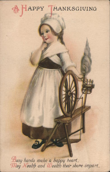 Front: A Happy T HANKSGIVING May rich blese, and Peace, and Plenty, Prosperity, be yours this Thanksqiving Day MADE IN U.S.A WOLF & CO. N.Y. Back: 33 EM a Happy Shankagiring nor. 25th 26. Elmer Sylvia from, Irankie ankie Walch ng Walange. 19/26