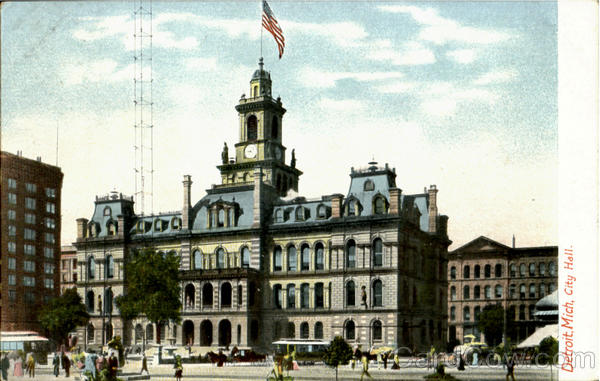 Front: Detroit, Mich, City Hall. Back: THE HUGH C. LEIGHTON CO., MANUFACTURERS. PORTLAND ME..U.S.A. One Cent for United States, and Island Possessions, Cuba, Canada and For Foreign.