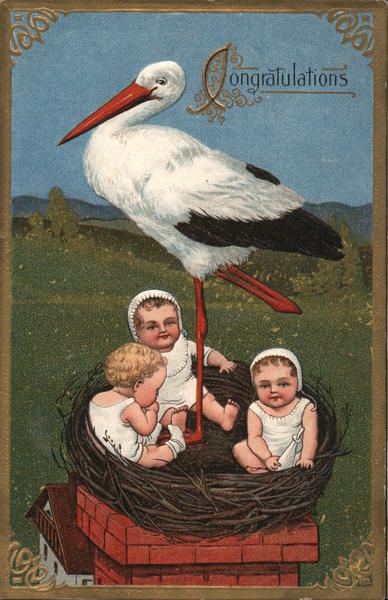 Front: ongralulations Back: Place Poslage Stamp Here 0st Card Domestic One Cent Foreign Two Cents The Address to be written on this side STORK CARD SERIES NO.I.