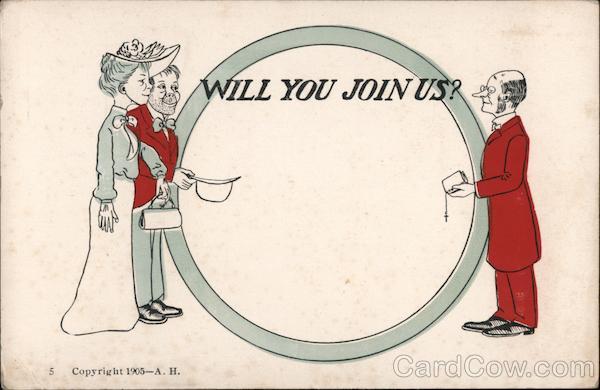 Front: WILL YOU JOIN USR Copyright 1905-A. H 5 Back: PUT Post Card ΟΝE CΕNT STAMP HERE This side for the address only
