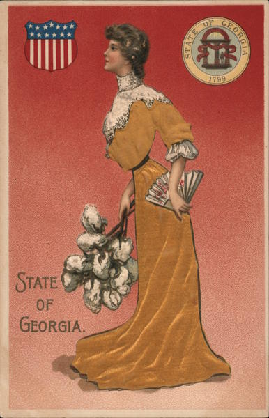 Front: ON'S 1799 STATE OF GEORGIA. GEORGIA STATE Back: This Space For Writing Messages 75- Place Stamp Here Post ARD Domestic One cent OST Foreign Two cents This side for the Address only. SL Made in Germany